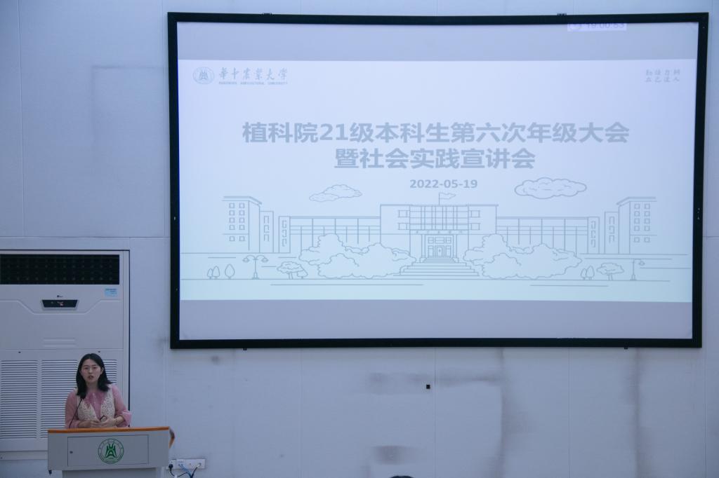 5月19日晚,植科院在三教s1报告厅举办第六次年级大会暨社会实践宣讲会。21级全体学生参加会议,辅导员李纵擎主持。
