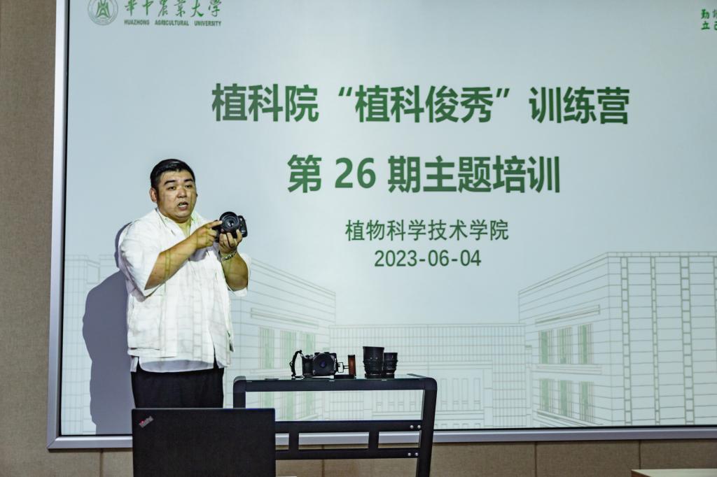 6月4日,植科院在三综A705举办“植科俊秀”训练营第26期活动。本次培训以“手机运镜与快速出片/单反相机快速上手”为主题,特别邀请武汉有教文化传播有限公司摄像师易俊作为主讲人,分享摄影技术。
