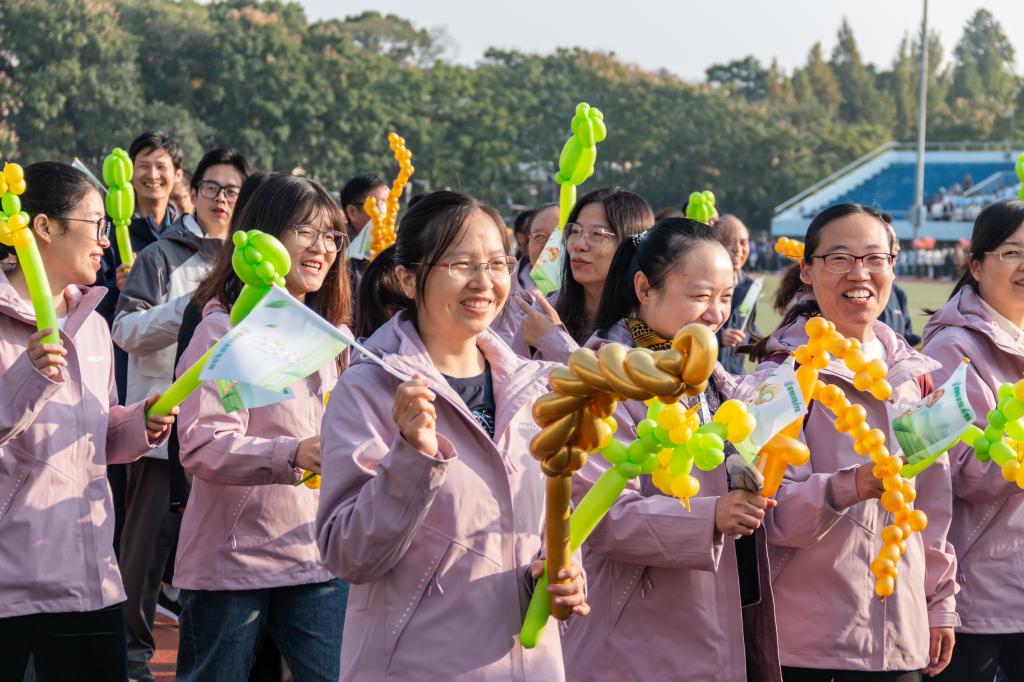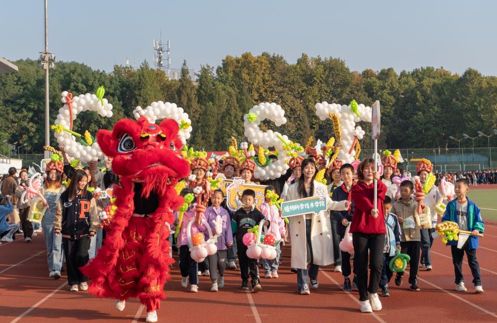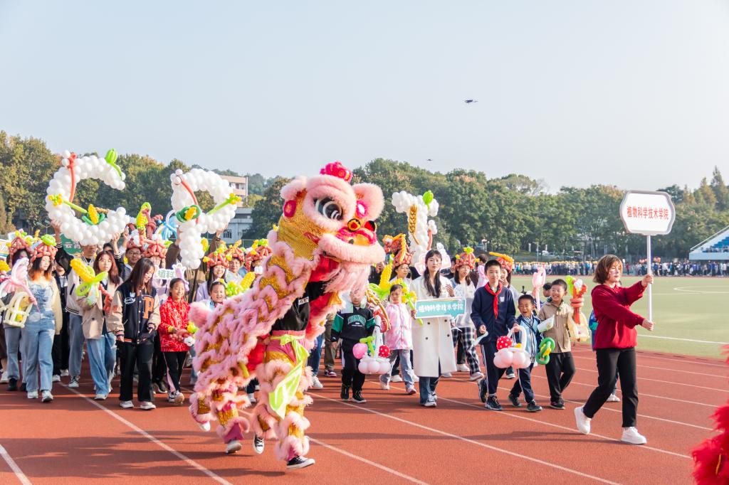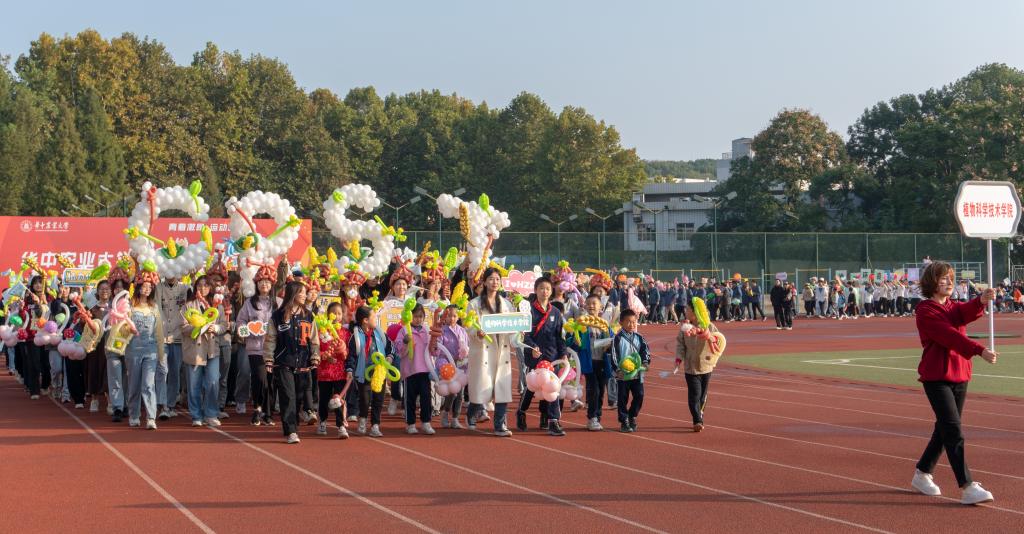 在早操方阵汇报结束后,我们老师与学生组成“植科”方阵,迈着坚实有力的步伐,缓缓步入操场。老师与同学们手持棉花、蘑菇、玉米、小麦等气球模型,昂首阔步走过主席台,老师同学们或交流着,或微笑着,小朋友们也兴奋地东张西望,展现着独属于植科的精神风貌。“踏浪前行风正劲,不负韶华争朝夕。”新时代的植科人,正向着美好未来前进着。