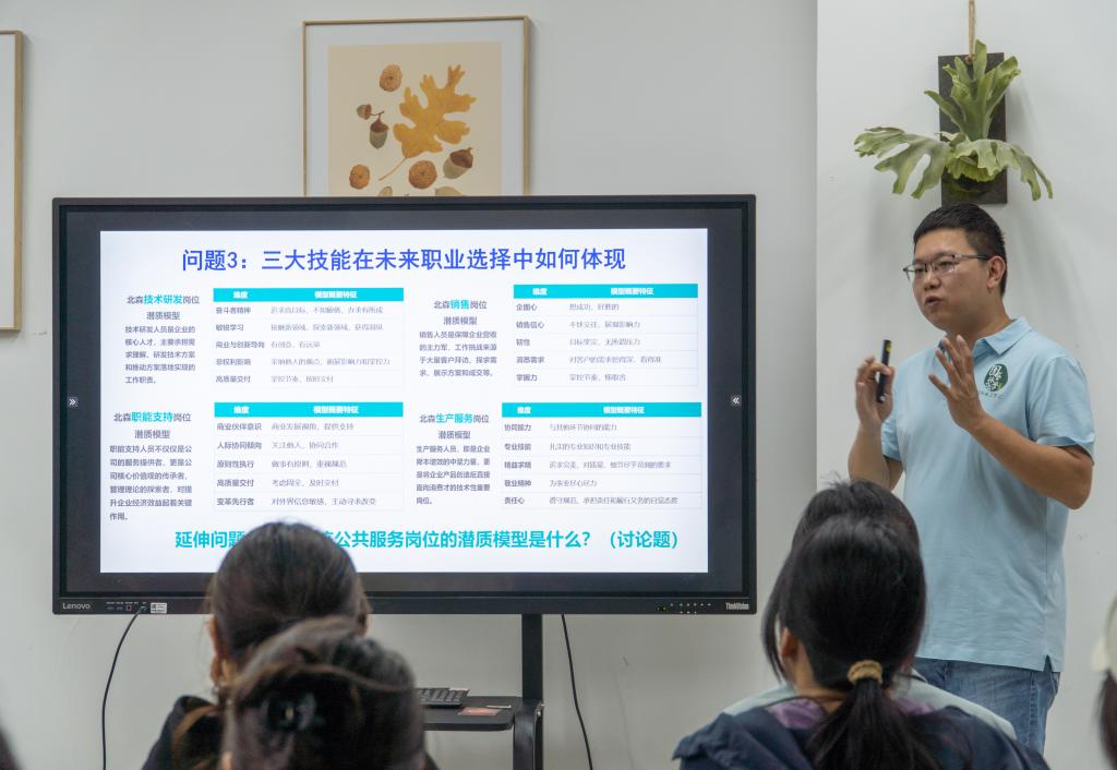 当提及提升职业技能的方法时,肖晗向同学们介绍了一份“个人能力资源包”,该资源包分为三个核心部分:可迁移技能、自我管理技能和专业知识技能。他指出,可迁移技能体现在学生工作、实习、志愿服务等职场经历中;自我管理技能则通过个性特征、工作风格和价值追求等形容词和副词来描述个人职业成长;专业知识技能则涵盖了专业课程、技能证书和课题项目等专业领域内的硬实力。肖晗鼓励同学们反思并利用个人能力技能,使之成为提升未来职业核心竞争力的有力支撑。