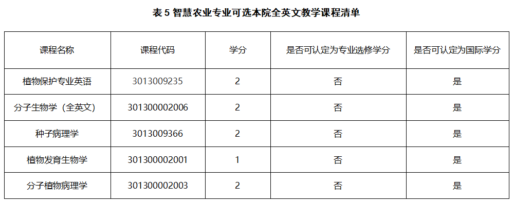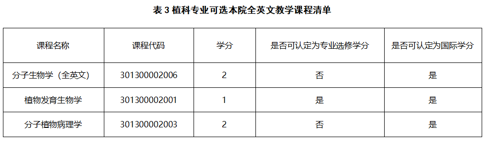 其中指定选修《种子病理学》因种工专业学生必须要修读,若认定国际学分后所差的2学分可以任意再选相应的中文课程学分。