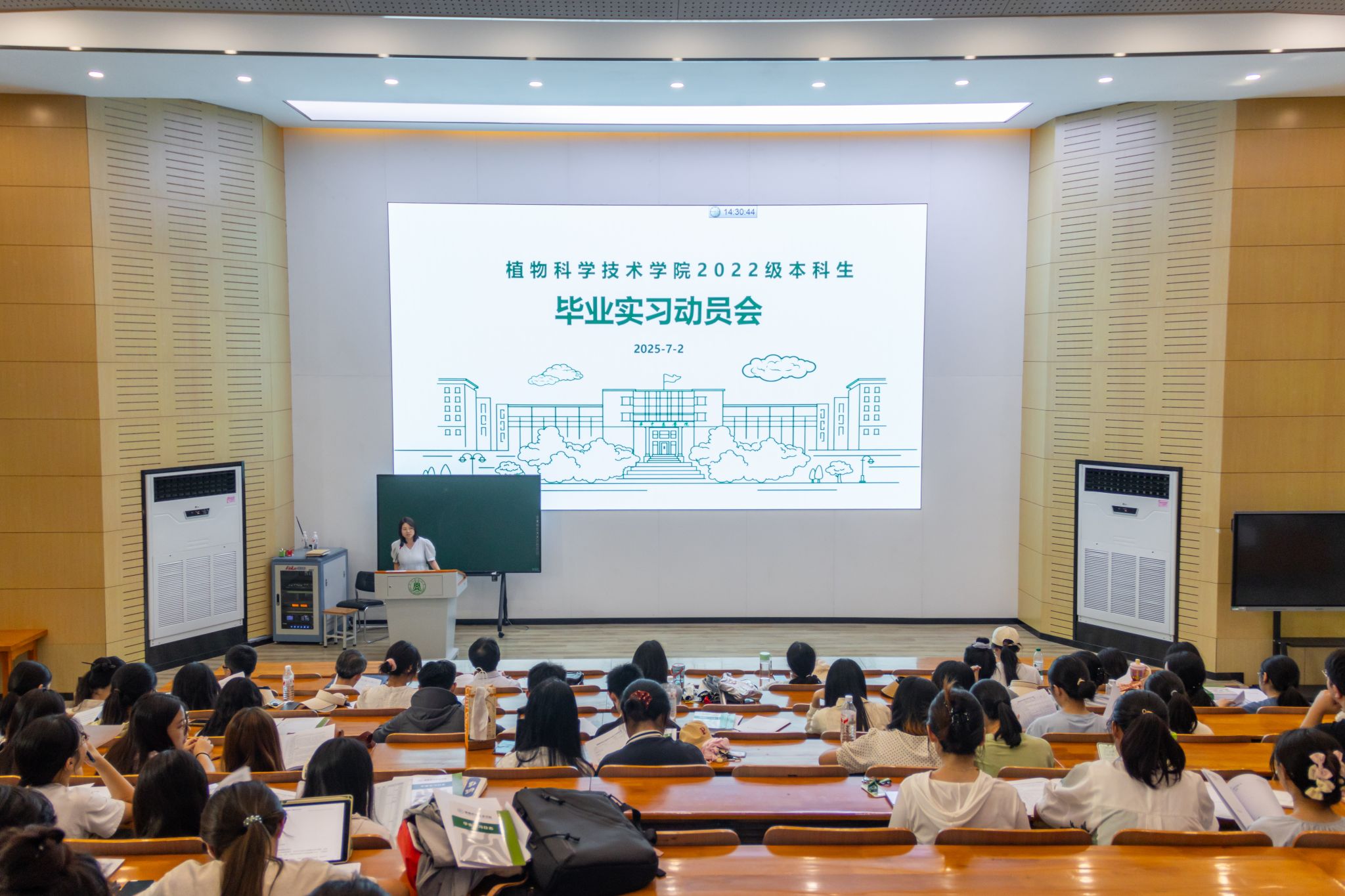 7月2日下午,学院2022级本科生毕业实习动员大会在三教S1报告厅召开。学院副院长罗朝喜、李林,种子科学与工程专业指导老师余四斌,应用生物科学专业教师代表蔡青,辅导员张露以及2022级全体本科生参会。