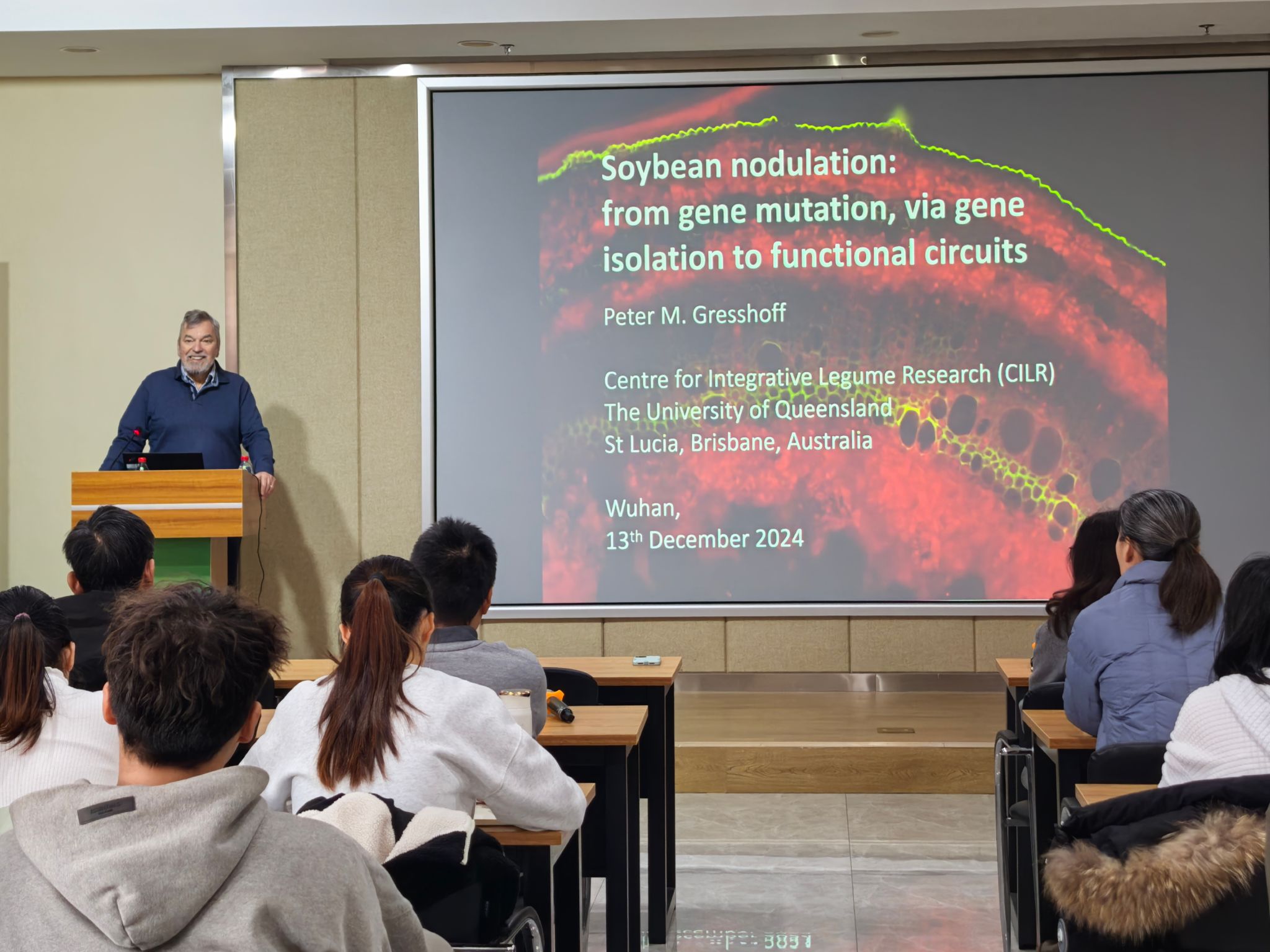 12月13日,应学院大豆团队邀请,澳大利亚昆士兰大学的名誉教授、ARC卓越豆科植物研究中心前主任、RIRDC生物燃料和生物能源委员会委员Peter Gresshoff教授做客第200期“作物科学高端讲坛”,在第三综合楼A705报告厅分别做题为“Molecular genetic analysis of Autoregulation of Nodulation (AON) in soybean”和“Bioenergy and biofuel capability of the legume tree Pongamia pinnata”的学术报告。两场报告分别由李霞教授和纪洪涛副教授主持。