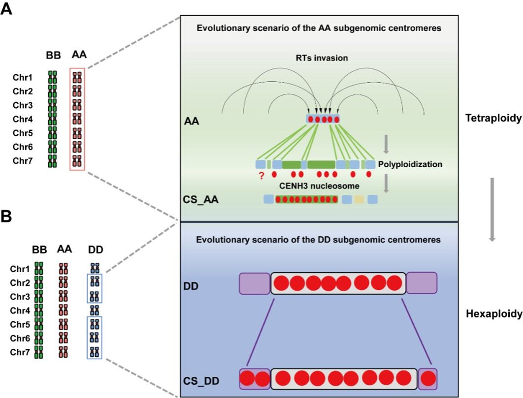 Conclusions:Our study provides a comprehensive landscape of centromere adaptation, evolution, and maturation, along with insights into how retrotransposon invasions drive centromere evolution in polyploid wheat.