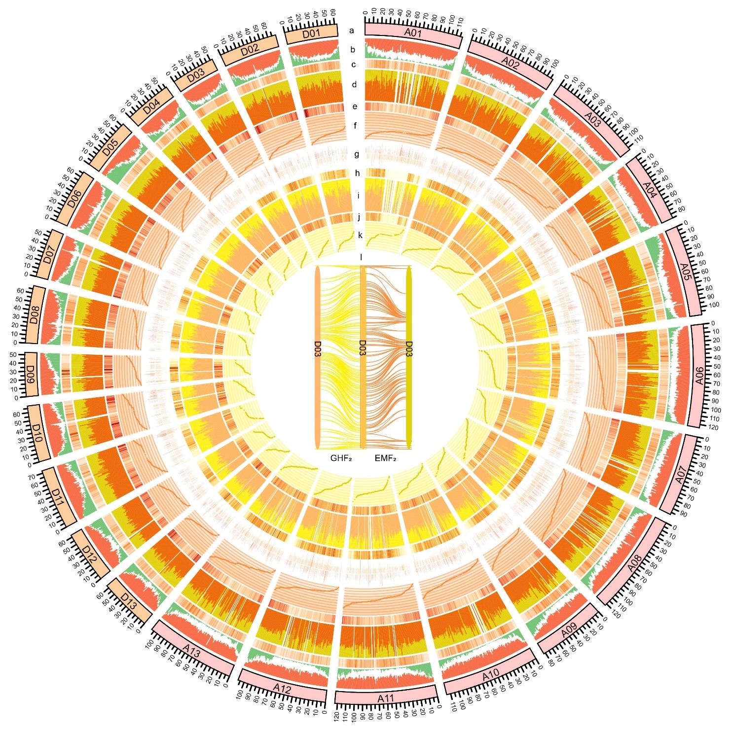 2021年5月1日,Genomics杂志在线刊发了棉花遗传改良团队题为“Gossypium tomentosum genome and interspecific ultra-dense genetic maps reveal genomic structures, recombination landscape and flowering depression in cotton”的研究论文。本研究组装了四倍体棉花野生种毛棉的高质量参考基因组,并构建了两个超高密度种间遗传图谱,对棉花重要性状的进行了定位和解析,为更好地了解棉花种间杂交与重组,利用棉花野生种质的宝贵基因资源奠定了基础。