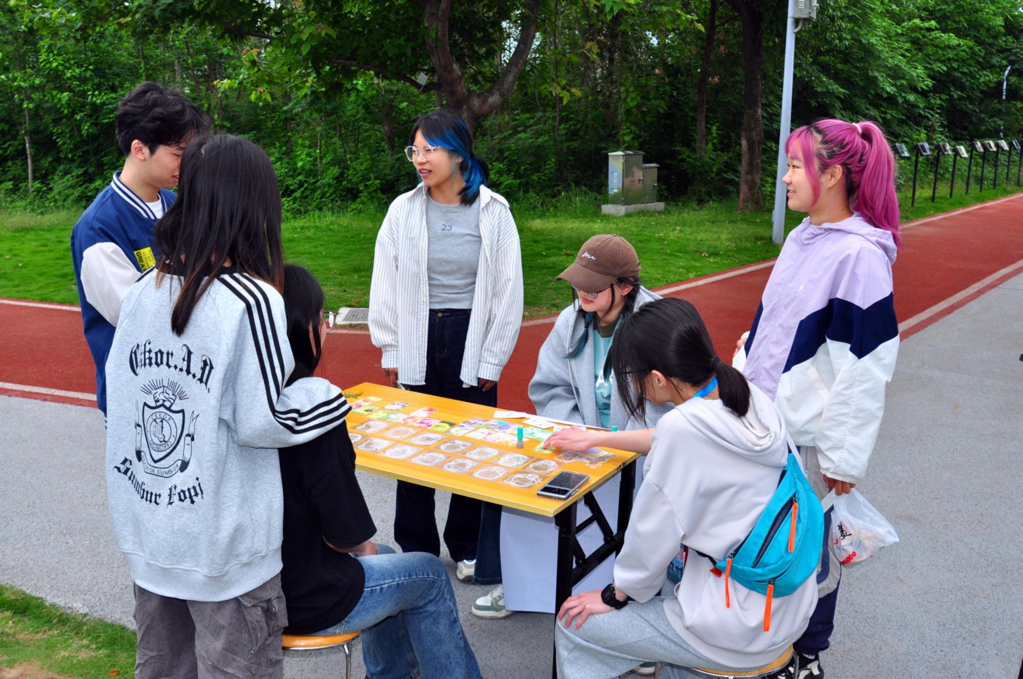 5月10日下午,“春野奇遇”定向越野活动在校园狮山广场、荟五小广场及乐乐园同步展开。活动共设置四个主题打卡点,巧妙融合传统游戏、艺术创作与心理互动。在“传统游戏打卡点”,同学们通过套圈、投壶等经典游戏锻炼身体、增进友谊;“春日寻宝打卡点”以神秘线索引导参与者探寻隐藏“宝藏”,在探索中感受春天气息;“心理互动打卡点”作为亮点环节,通过心理测试、情绪表达等互动,帮助同学们掌握日常心理问题的应对方法;在“闻歌识春”打卡点,青年学子借助听歌识曲小游戏,于音乐中放松身心、激发情感共鸣。