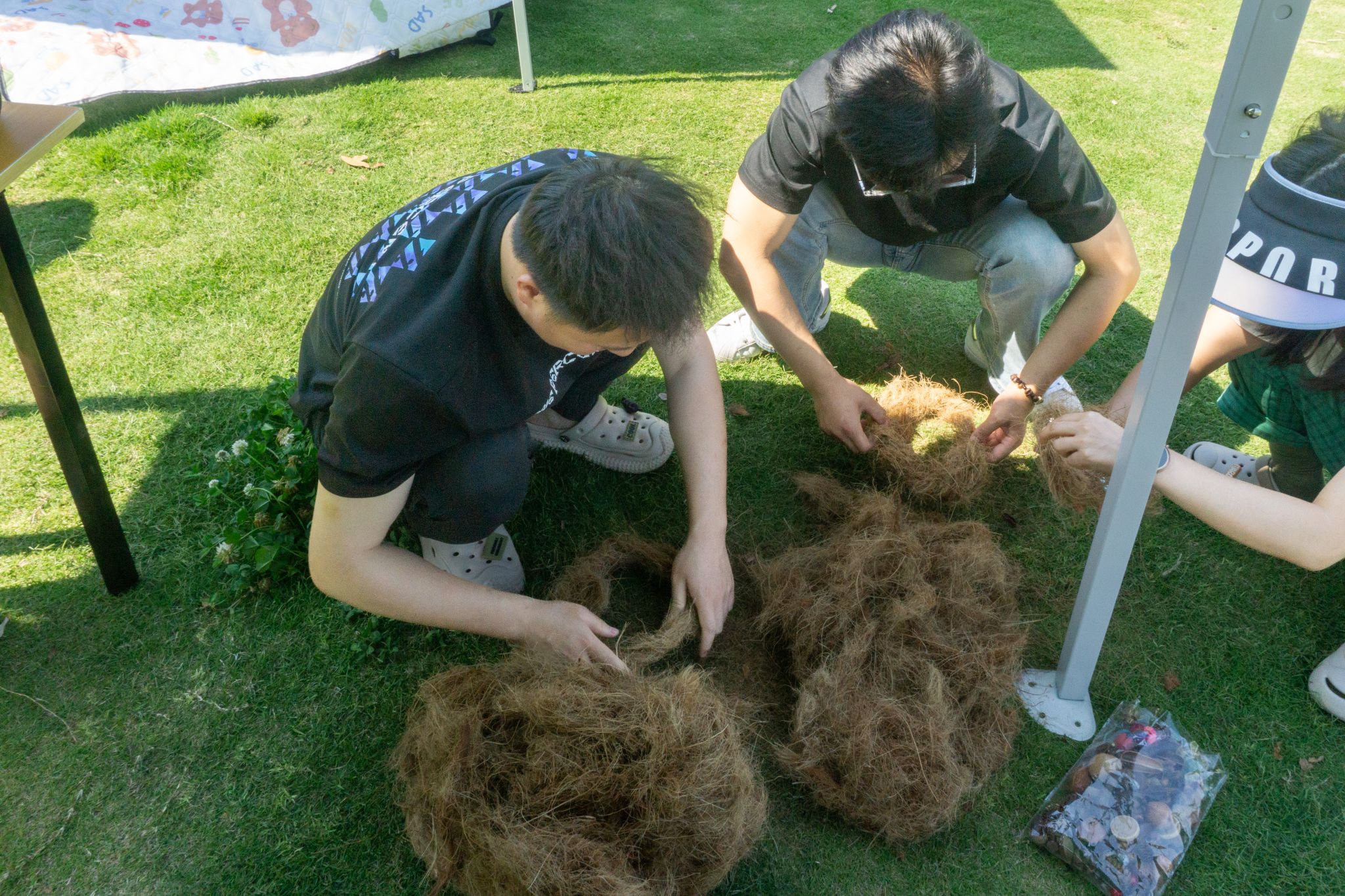 5月11日,乐乐园内的“春林归啼”手工区成为创意实践的热点。师生们利用树枝、草绳等自然材料编织鸟巢,辅以干花、彩带进行装饰。植生2410班韩啸同学在活动中分享道:“缠绕每一根枝条的过程如同梳理心情,将完成的鸟巢悬挂于树上,仿佛为校园献上一份生命的礼物。”参与者还在鸟巢中嵌入写满心愿的纸条,让春日希冀随风轻扬,为校园增添温情与活力。