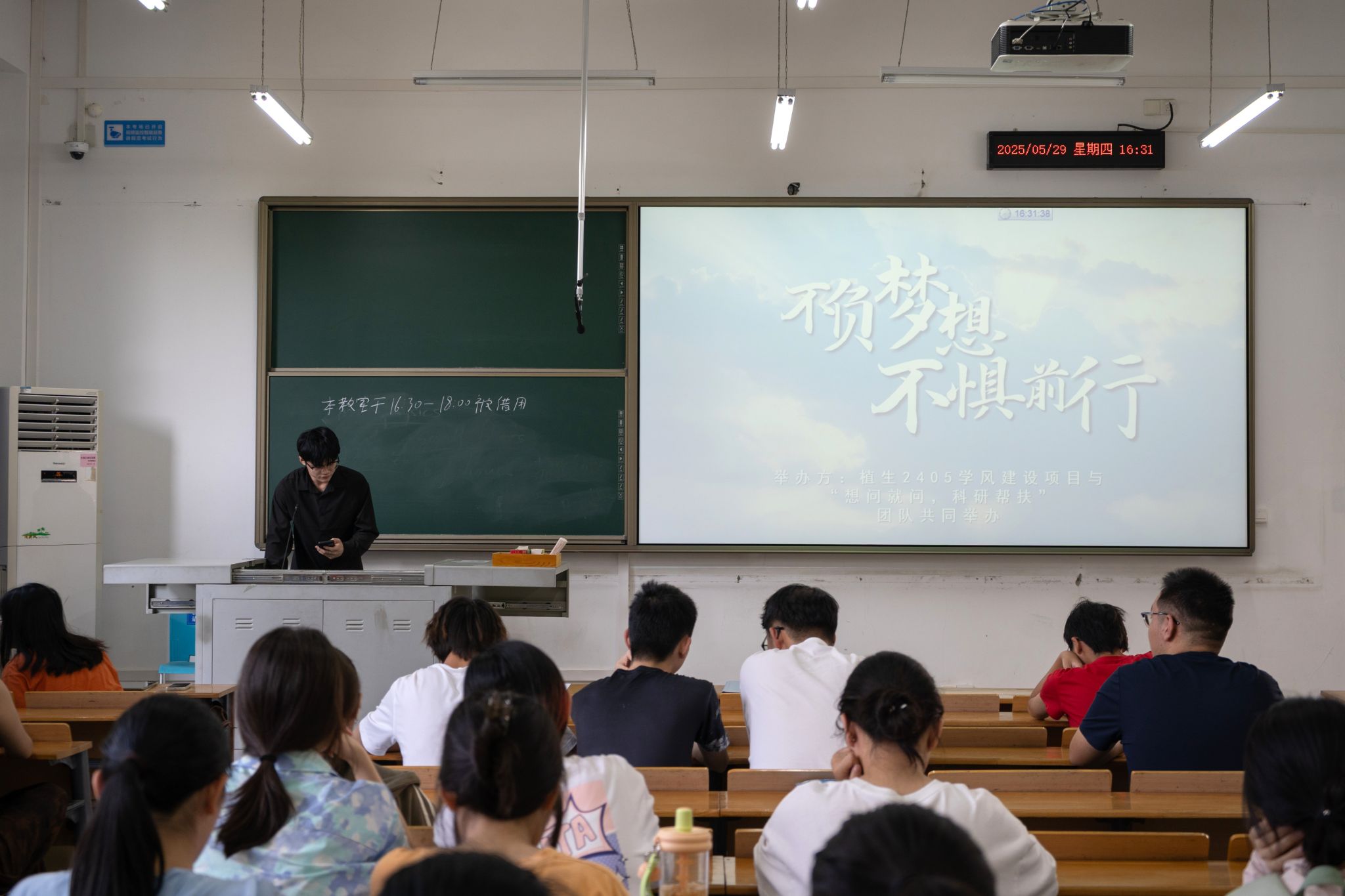 5月29日晚,biwn必赢网址植生2405班在四教A108教室举办“朋辈领航”经验分享会,邀请种工2201班李英、植科2201班张涵超、应生2201班朱书峰分享学习经验,约50位24级学生参与活动。