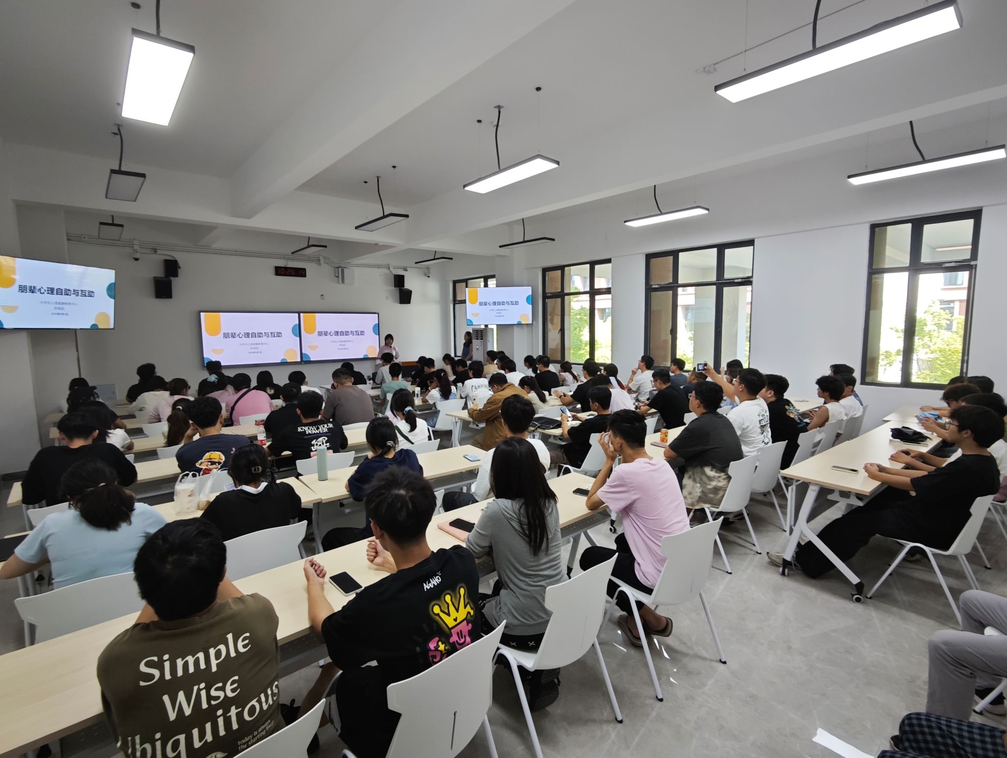 9 月 2 日上午,我们联合工学院在新农科、新工科基地二教 202 教室共同开展学生骨干心理健康专题培训。本次培训特别邀请到我校心理健康教育中心的陈瑞蕊老师进行题为 “朋辈心理自助与互助培训” 的报告,我们与工学院 2024 级的班支、心理委员参与了此次培训。