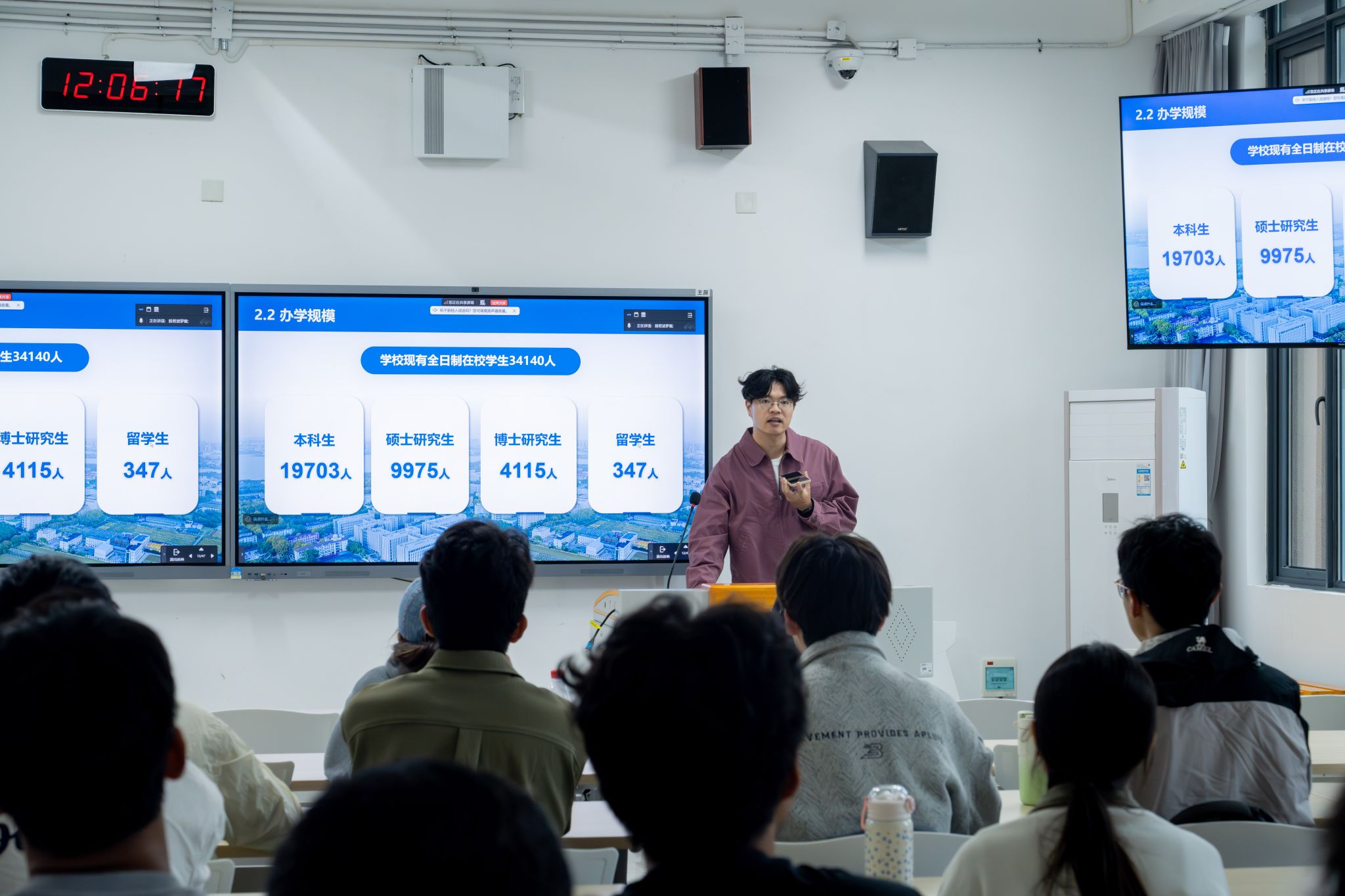 在大学生艺术中心,王艺菲从本科教学评估的意义流程、学校教育教学理念、特色举措及建设成效进行了说明。她介绍到:“本科教学评估既关系到学校“双一流”建设与长远发展,也直接关乎同学们的成长环境与发展资源。“随后王艺菲特别提醒同学们严守课堂纪律,保持积极学风,共同营造良好的学习氛围,充分展现植科学子的良好精神风貌。