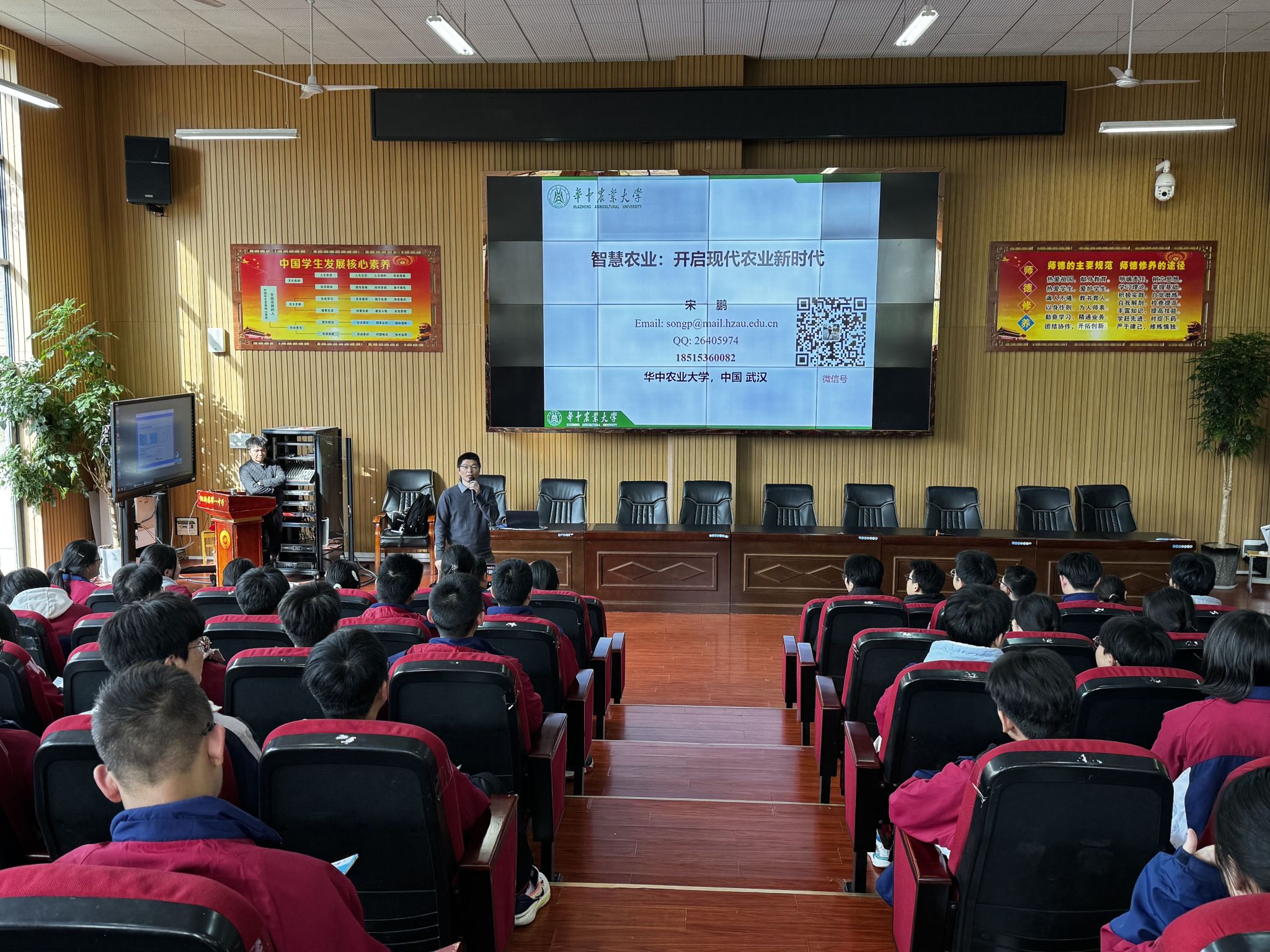 11月26日,学院赴阳新一中开展“华农教授进名校”活动,宋鹏副教授以“智慧农业:开启现代农业新时代”为题,为200余名师生做科普报告。
