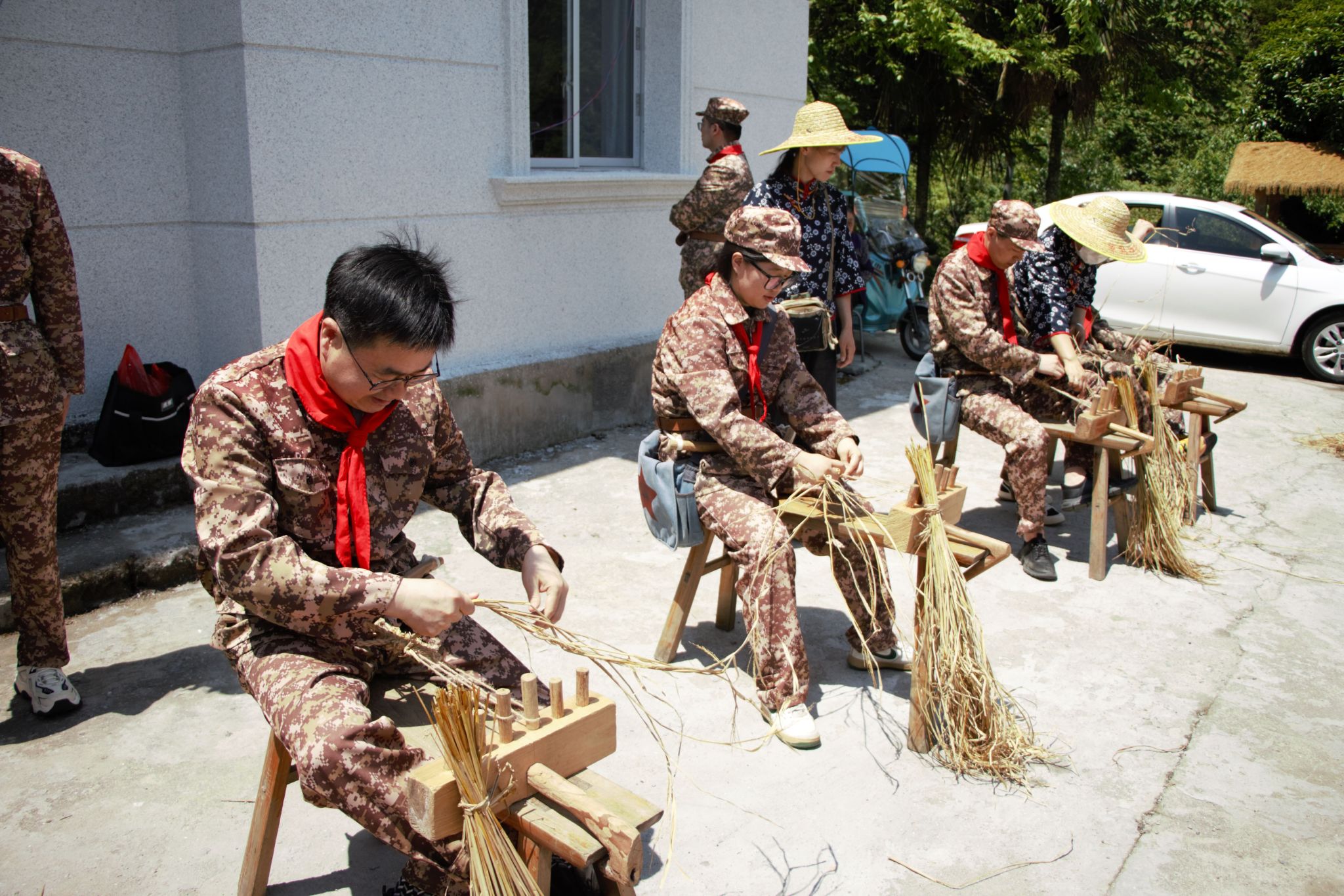 4月28日,学员们身着粗布军装,追随朱毛红军脚步,重走红军挑粮小道,跋山涉水、团结互助,切身感受当年红军翻山越岭的艰辛历程。在老乡家中,大家分组学习编织草鞋,通过一搓一挽一编感受“一双草鞋走天下”的坚韧;协作备制红军餐,于一粥一饭间体悟军民同心的传统。
