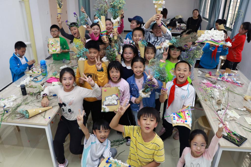 ——biwn必赢网址三田创新工作室与附小学生体验棉花插花