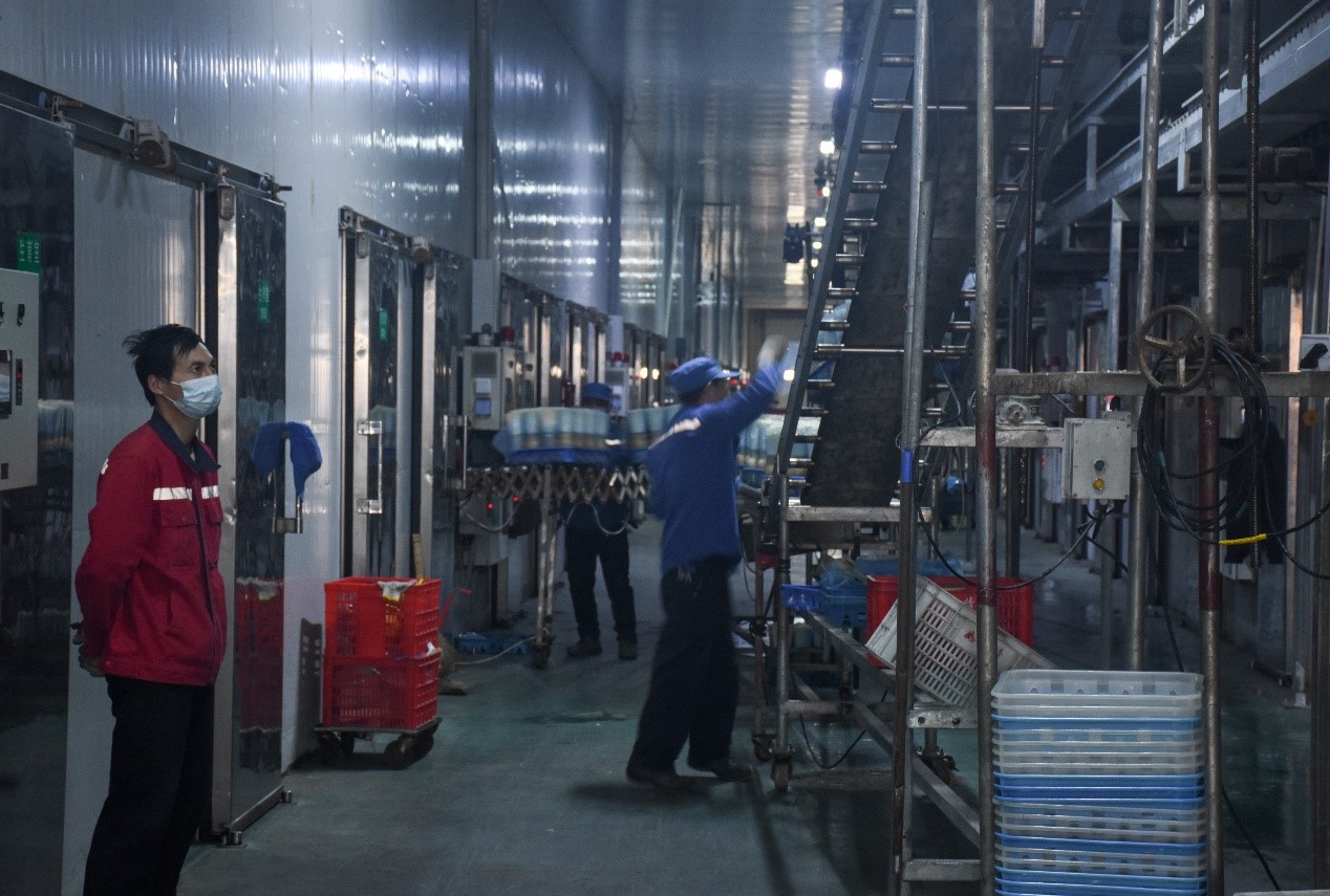 紧接着下一个参观地点是生育间。自动化的流水线,配合着工人们规范的操作让生产更加高效,在这里,每天可以产出150吨金针菇,用以满足市场的需求。在种苗温室,金针菇幼苗有序排列,在适宜的环境下,经过50多天的培养,金针菇就可以成熟。