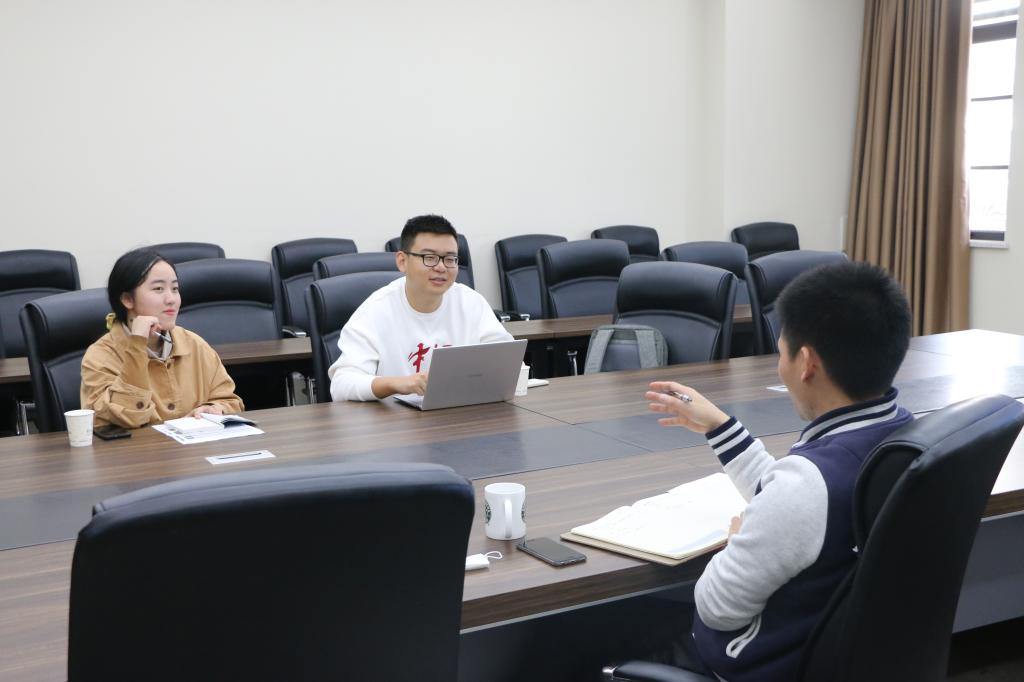 10月30日上午,学校团委调研我们创新创业工作,校团委创新创业工作负责老师王宁、方晨辰来访调研。学院创新创业负责老师熊攀攀参加会议。