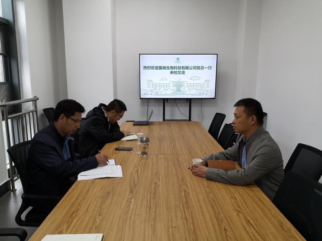 3月15日下午,莫纳生物科技有限公司技术总监陆青来我们座谈交流,我们党委副书记孙超、研究生辅导员李志强、本科生辅导员张涛参加交流。