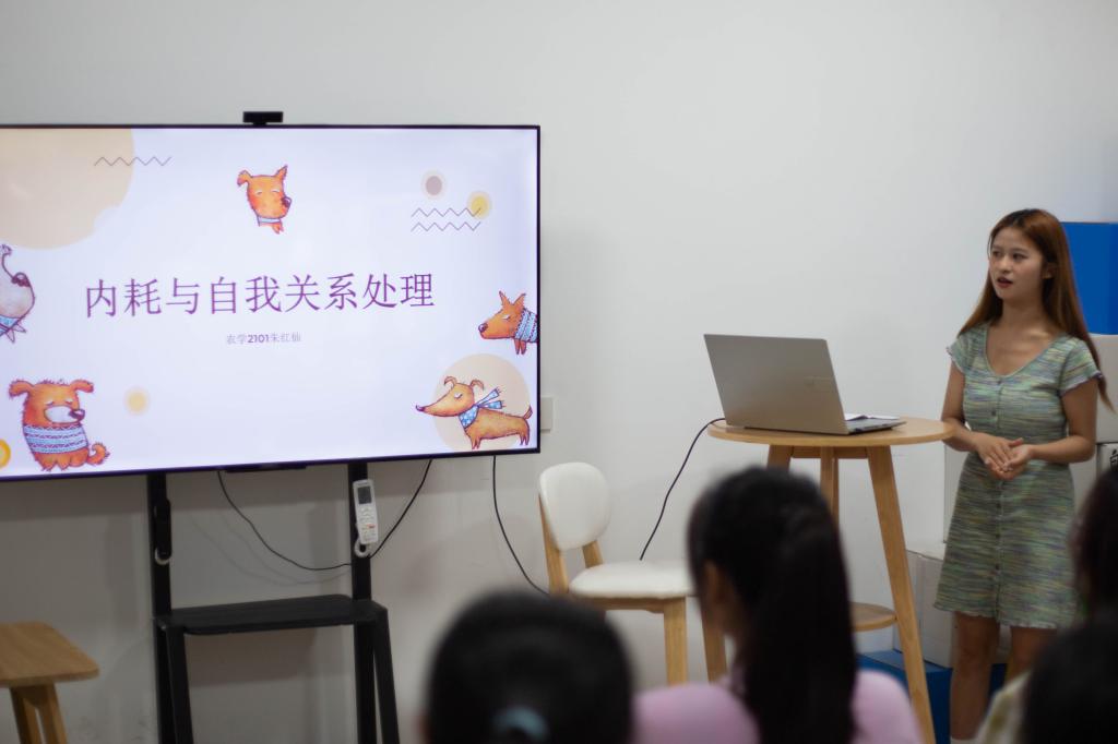 随后,朱红仙以“内耗与自我关系处理”为切入点向同学们分享自己的经验与建议。如何反内耗呢?她从三个方面给出建议,在认知上,要学会自我接纳,停止活在他人眼里,停止自我攻击;在情绪上,要建立对不如意事情的忍耐力;在行为上,拿出停止拖延的态度,避免反复犹豫,勇敢迈出第一步。朱红仙总结表示:“生命的意义在于开拓,而不是固守,无论什么时候我们都不应该失去前行的勇气,人虽然渺小,人生虽然短,但是人能学,人能修身,人能自我完善,人的可贵在于人的本身。”