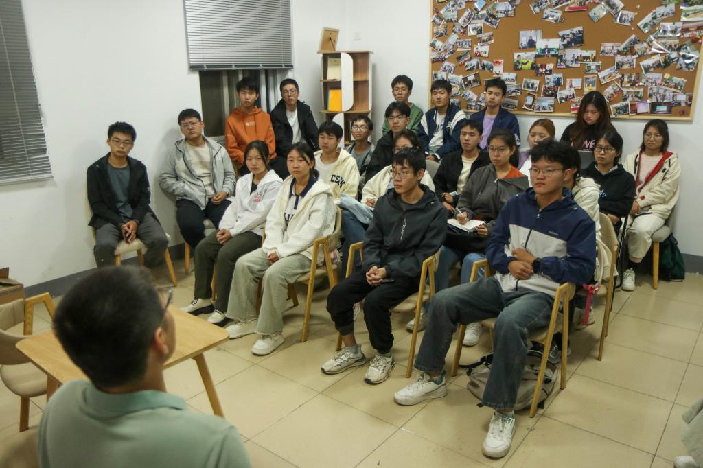 在交流问答环节,有同学对专业分流提出了疑惑,宋鹏解释道:“在选择分流方向时,同学们可以根据自己的喜好,兴趣是最好的老师,它能够驱动我们成长。”最后,宋鹏老师向同学们发出寄语,希望大家应好好珍惜和利用好大学四年,做奋进青年。