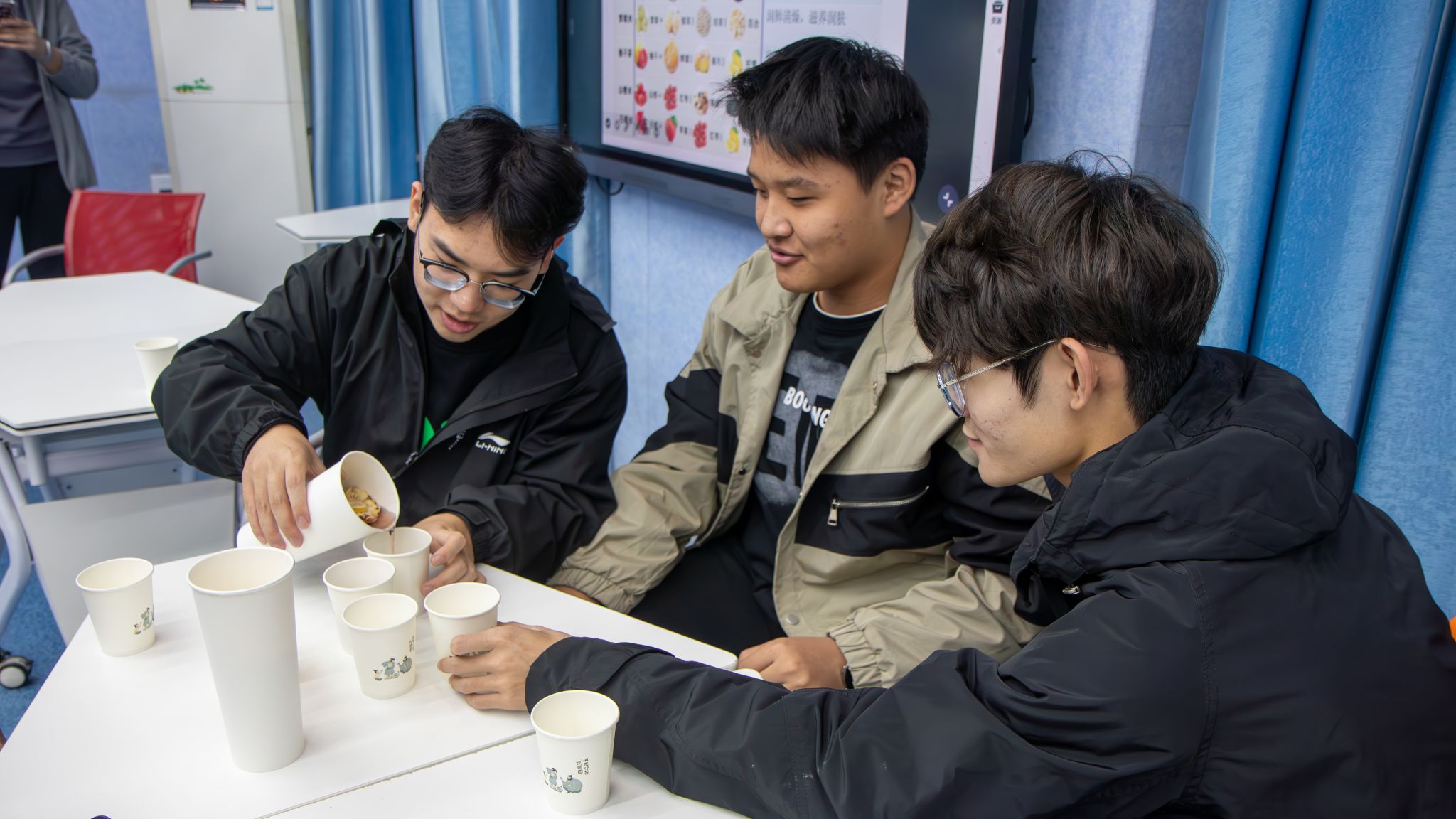 在果茶制作环节,同学们在工作人员的指导下,动手沏茶、互相品茶,调配个人喜爱的果茶口味。在滚滚热水冲泡之下,一杯杯独具特色的果茶逐渐成型,芳香四溢,令人垂涎三尺。